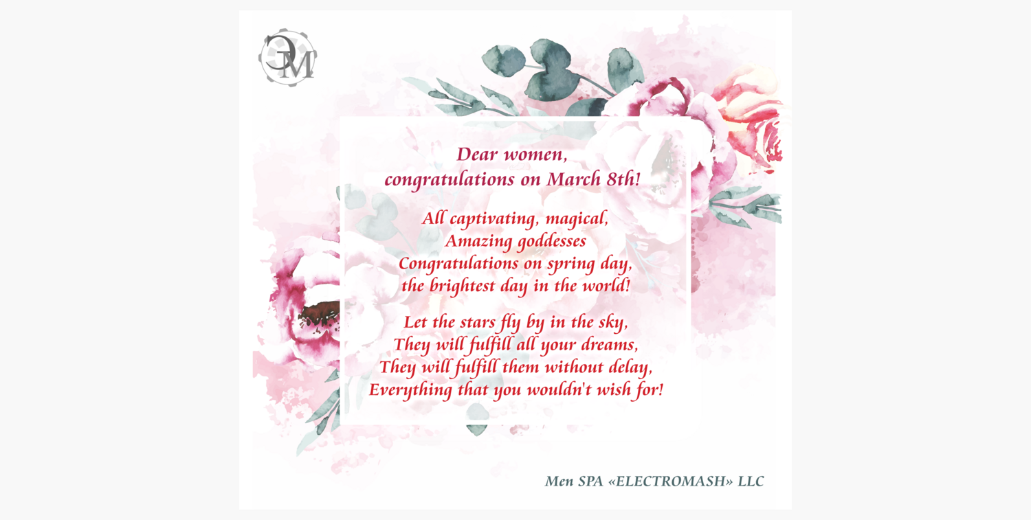 We sincerely congratulate you on International Women's Day!We wish you beauty, love, good health, and spring warmth! Be the happiest and light up the whole world with your smile!